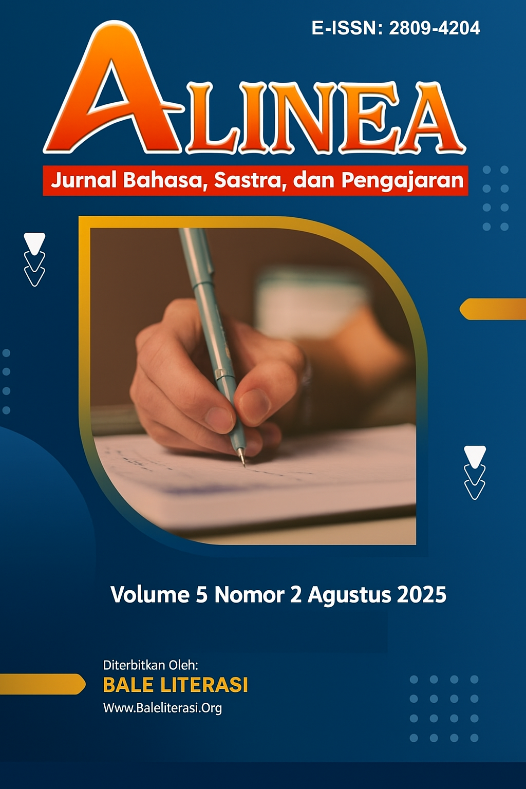 Alinea: Jurnal Bahasa, Sastra dan Pengajaran adalah jurnal yang diterbitkan oleh Lembaga Bale Literasi dengan e-ISSN:2809-4204. Saat ini, Alinea adalah forum bagi peneliti, dosen dan pengamat bahasa untuk menerbitkan hasil penelitian mereka di bidang bahasa dan sastra (lokal dan asing), serta pembelajaran bahasa dan sastra. Artikel yang diterbitkan adalah hasil penelitian, konsep teoritis dan pemikiran yang menawarkan nilai kebaruan. Alinea diterbitkan tiga kali setahun, yaitu pada bulan April, Agustus dan Desember.